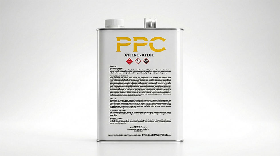 Employed to thin specified oil-based paints, lacquers, varnished, epoxies, adhesives, anti-rust coatings, porch and deck paints, and synthetic enamels. Additionally, Xylene can remove certain adhesives ans derves as an excellent solvent for cleaning tools and equipment immediately after use.